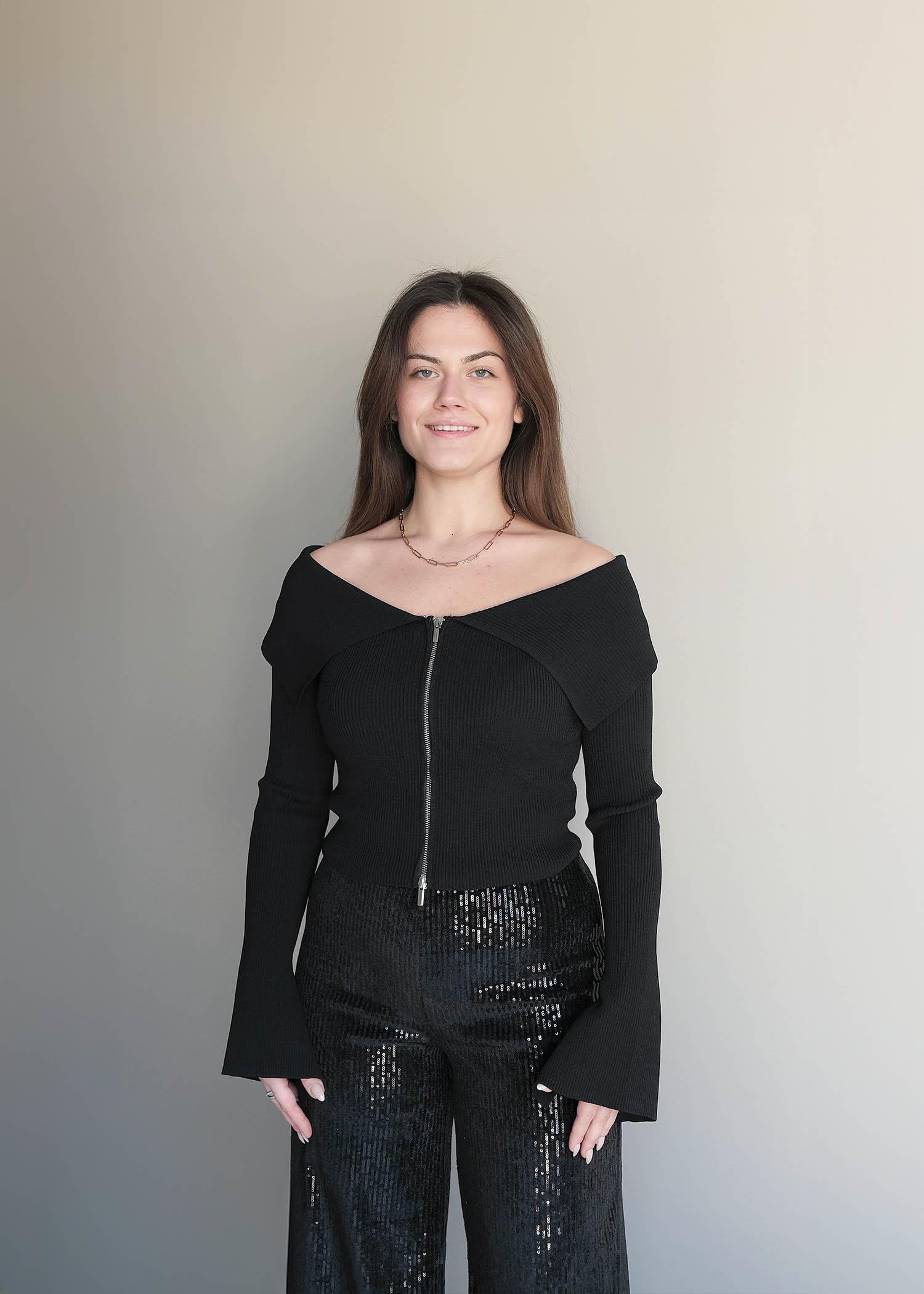 Bardot Yaka Kol Yırtmaç Det.Fer.Triko Hırka Siyah